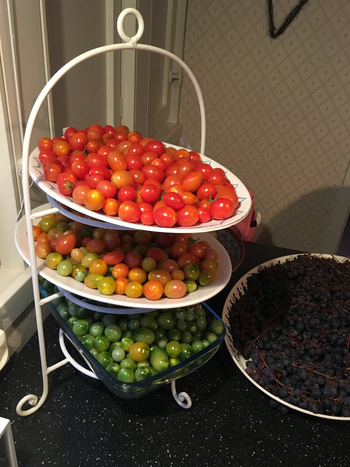 Vi fick så ofantligt mycket tomater i år på våra småplantor och på bilden ser du det sista jag plockade in innan frosten kom. I vanliga fall brukar jag odla i fyra fem svarta murarhinkar på vår balkong, men i år (eller förra året ska jag väl säga) blev det inte så. Istället satte jag tomatplantor, både höga och låga i 1 1/2 pallkrage och trots att jag älskar små söta tomater och smygäter så fort chans ges och att det var bevattningsförbud i somras så fick vi fin skörd. Jag har flera påsar med hemgjorda krossade tomater kvar i frysen och jag har några burkar med syltade tomater kvar. Faktum är att jag hade vanliga färska egenodlade tomater kvar också fram tills i går.